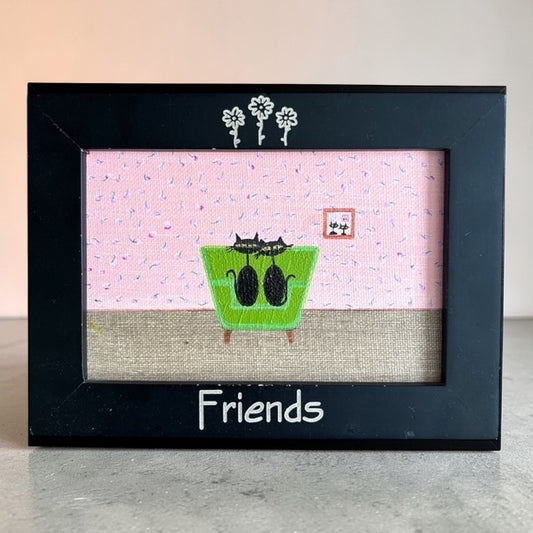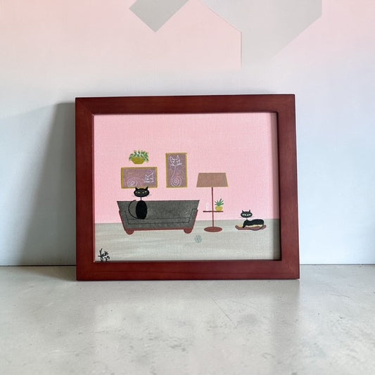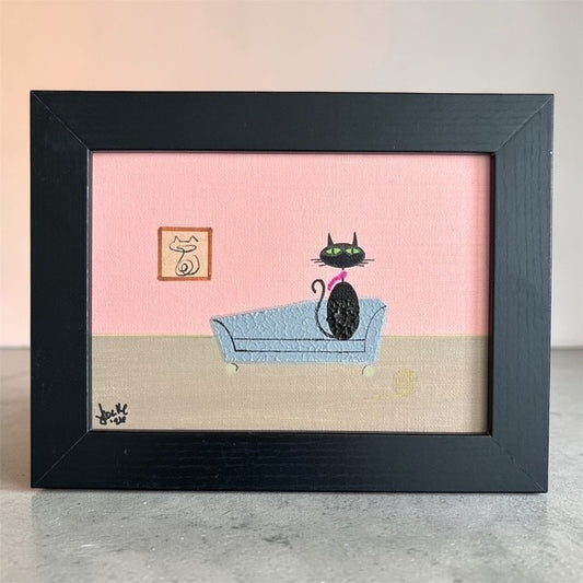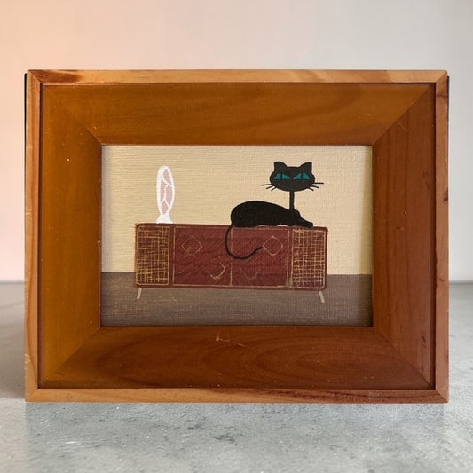 These original artworks range from small 3 × 5 inch paintings to larger 24 × 30 inch pieces, each created by hand in my studio. Many works are displayed in reclaimed vintage frames, with original scratches, wear, and distressed details intentionally preserved to honor their history. Some original cat artworks are also available as fine art prints, while select pieces are offered unframed, just as they were made.