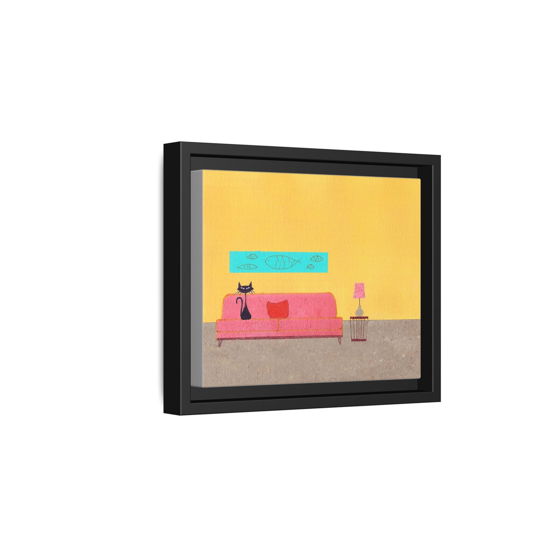 Blue Fish Black Kitty Vintage Inspired Framed Canvas Print