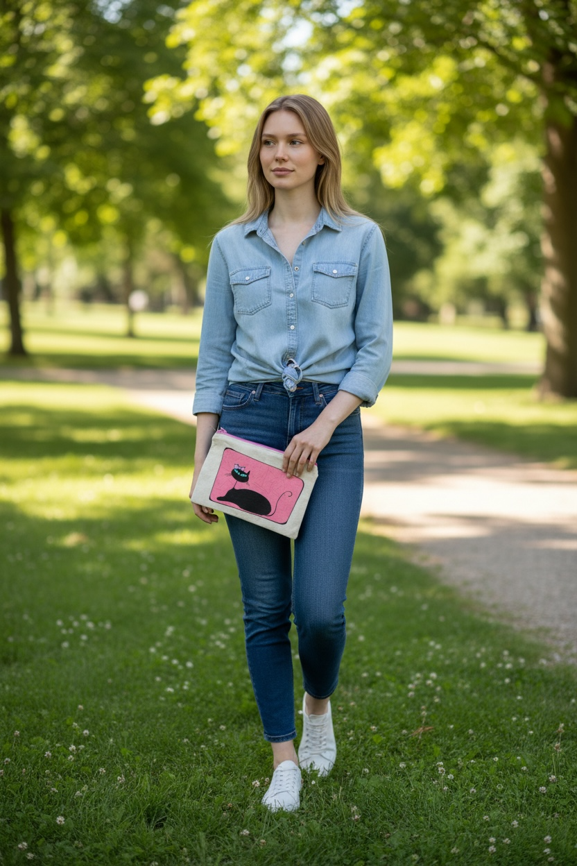 Discover the charm of our Canvas Pouch, crafted from durable cotton canvas and adorned with a hand-painted vintage black cat against a whimsical pink background. This stylish and functional accessory not only keeps your essentials secure with its zipper closure but also adds a touch of artistic flair to your everyday routine!
