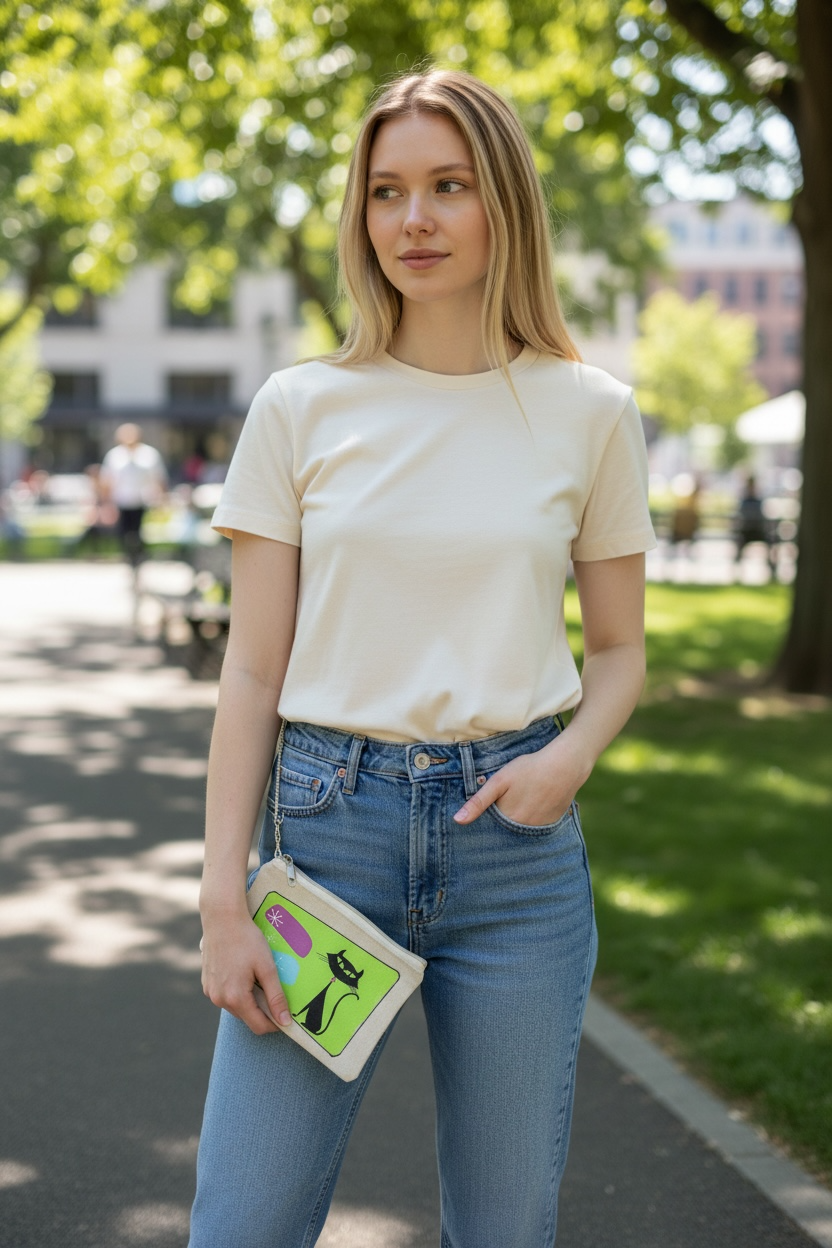 Discover the charm of our Canvas Pouch, crafted from durable cotton canvas and adorned with a hand-painted vintage black cat against a whimsical pink background. This stylish and functional accessory not only keeps your essentials secure with its zipper closure but also adds a touch of artistic flair to your everyday routine!