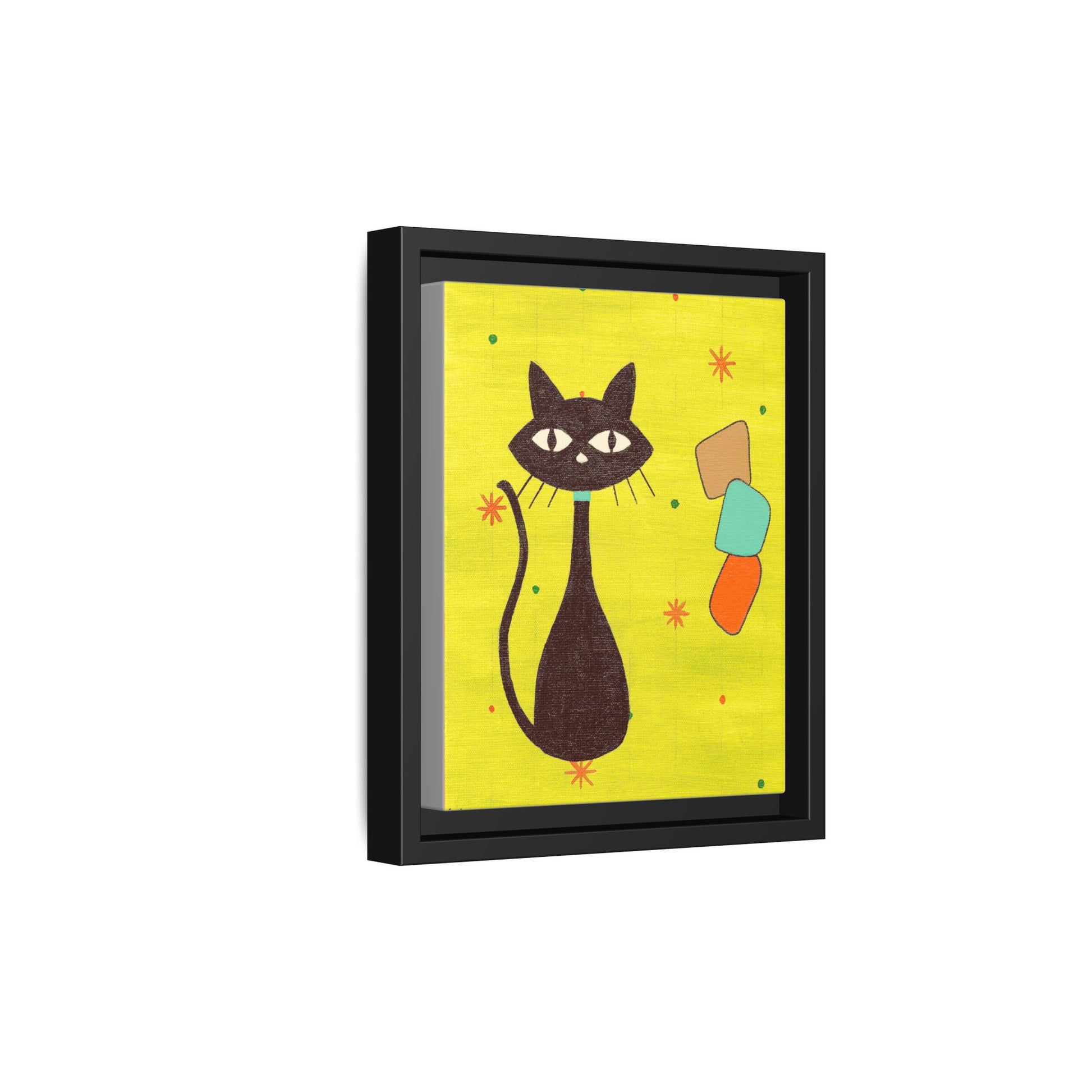 Play Time — Geometric Black Cat Matte Canvas Print (Framed)