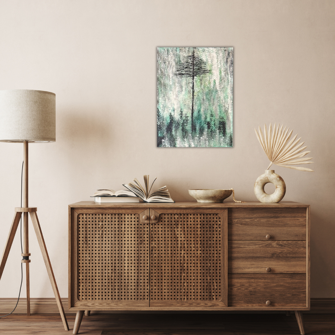Experience the striking presence of “The Tallest Tree I've Ever Seen,” a captivating artwork created with acrylic and ink on canvas. This piece showcases a solitary, towering tree rising majestically above a lush emerald forest, inviting you to immerse yourself in nature’s grandeur. Perfect for adding depth and serenity to any space, this painting brings the beauty and calm of the forest indoors while evoking awe and inspiration. Elevate your home or office with this timeless expression of nature’s strength and tranquility.