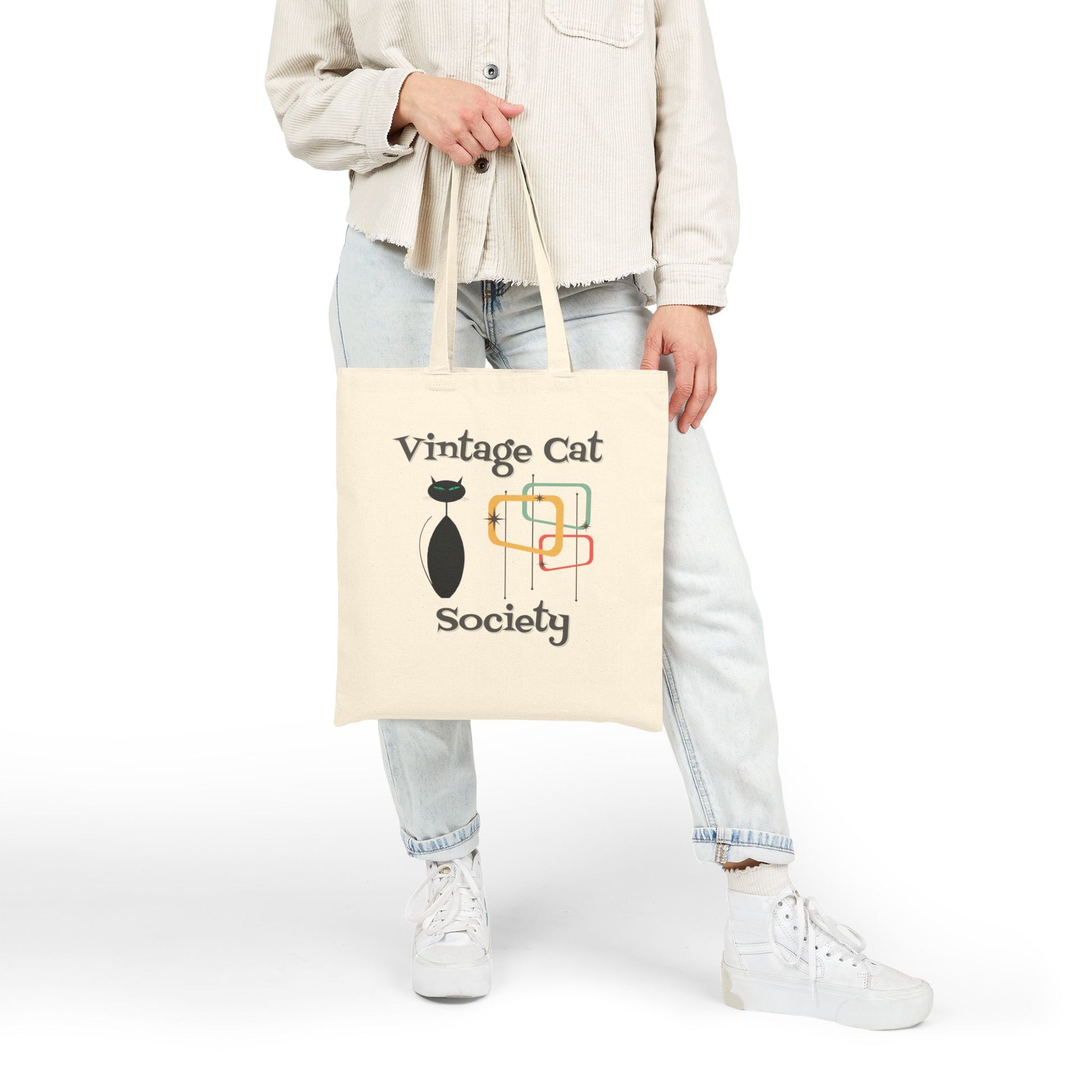 Vintage Cat Society Canvas Tote Bag