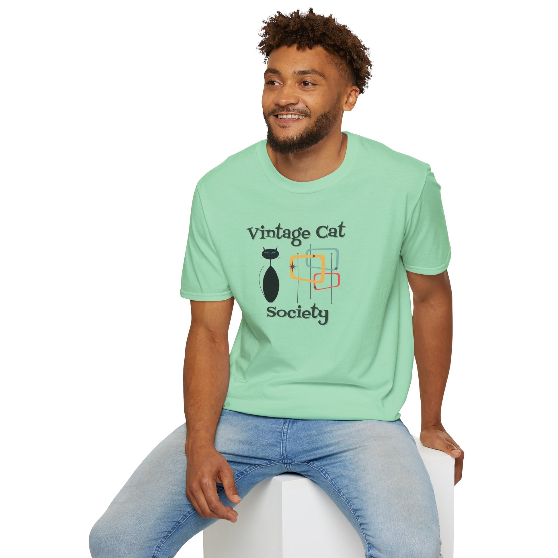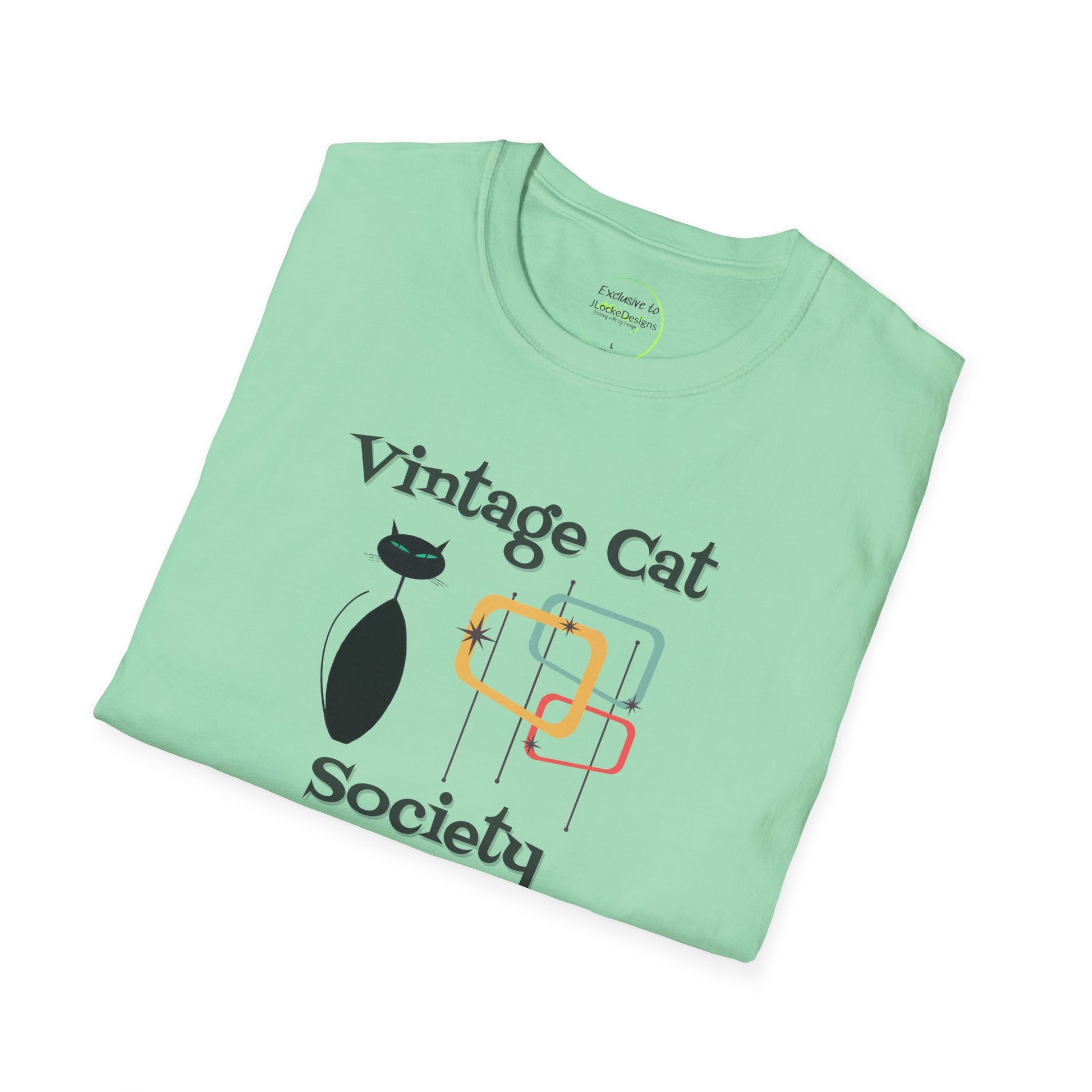 Vintage Cat Society Collection T-shirt that exudes a nostalgic vibe, perfect for cat lovers and those who appreciate retro designs. Ideal for casual wear or as a statement piece during cat-related holidays or events.